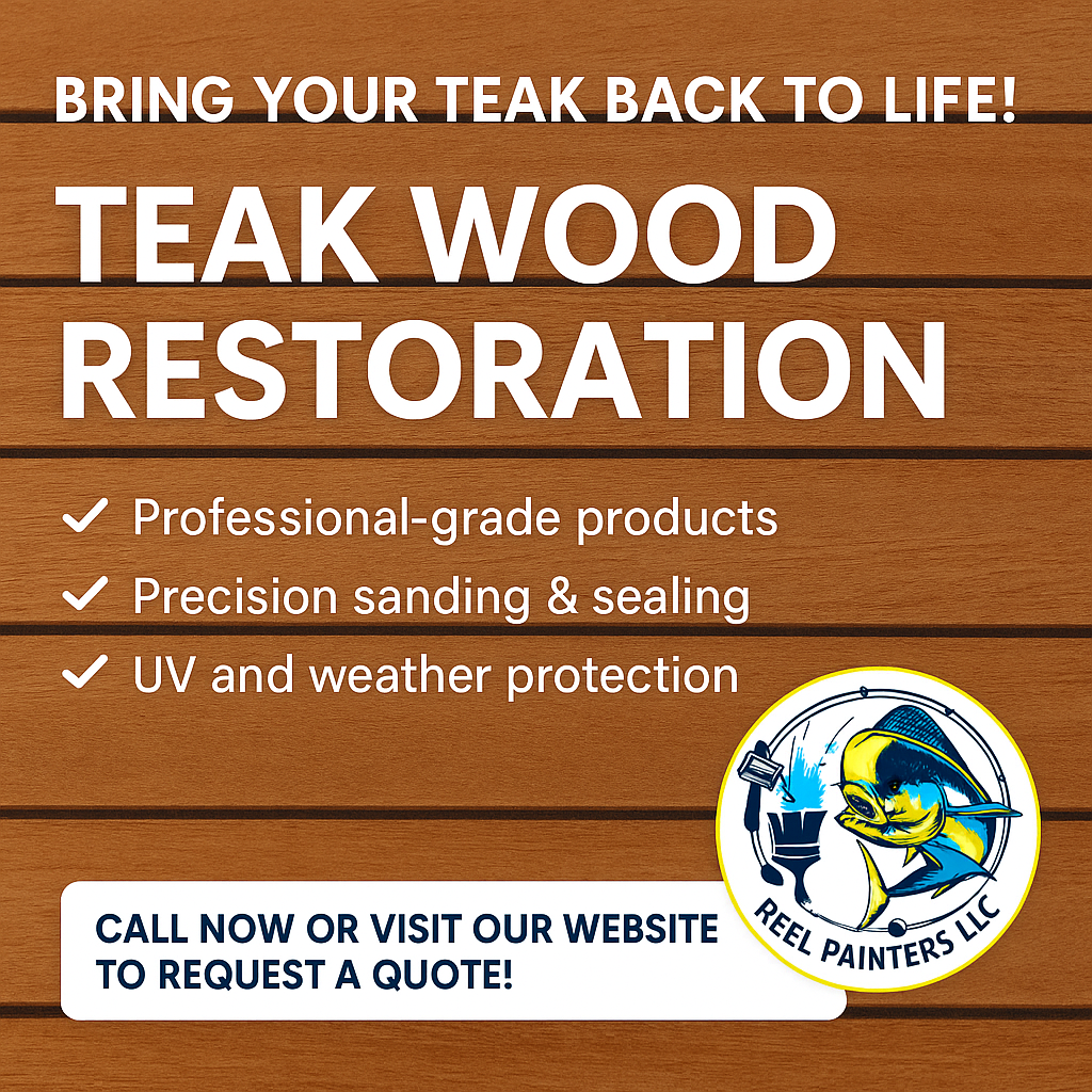 Teak wood naturally weathers over time, turning gray and losing its rich color. Our teak wood restoration service carefully cleans, sands, and seals the surface to bring the wood back to life. Using professional-grade products and precise techniques, Reel Painters restores the natural beauty of your teak while adding durable UV and weather protection to keep it looking great for years.